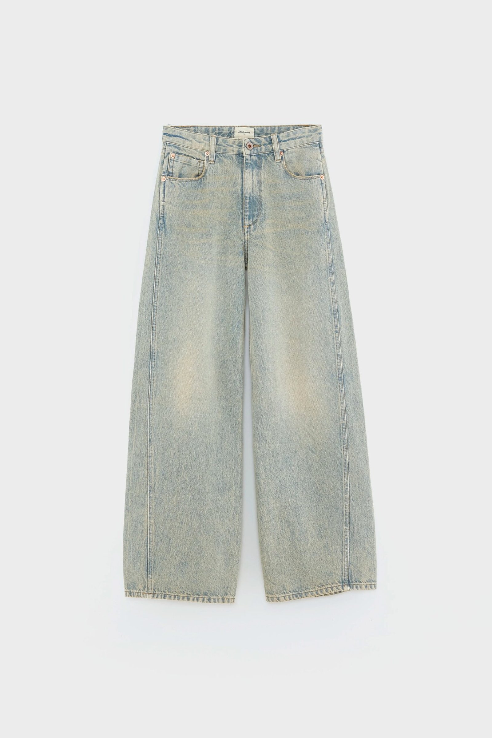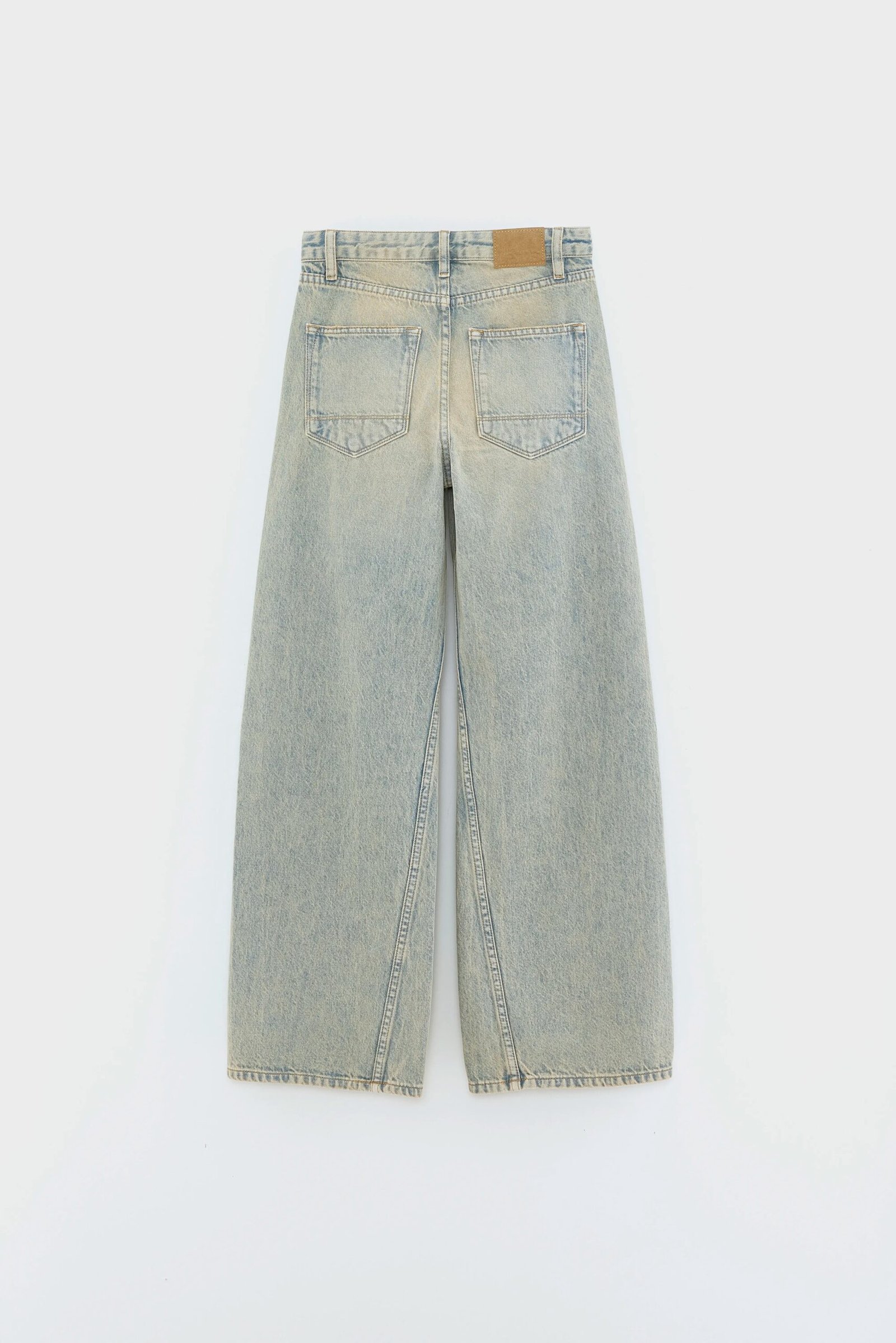 Regular jeans with a high rise and flared legs. made from used blue cotton denim.